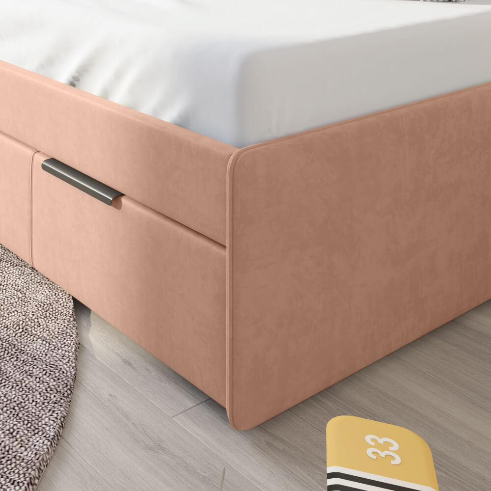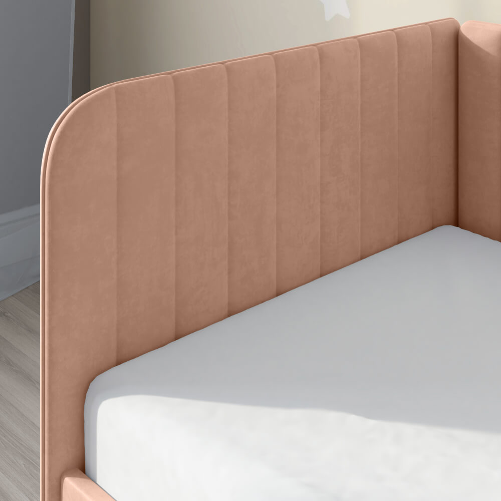 Детская кровать ELLA с вертикальной строчкой и выдвижным ящиком сочетает в себе функциональность, стиль, удобство и комфорт, делая ее отличным выбором для детской комнаты.