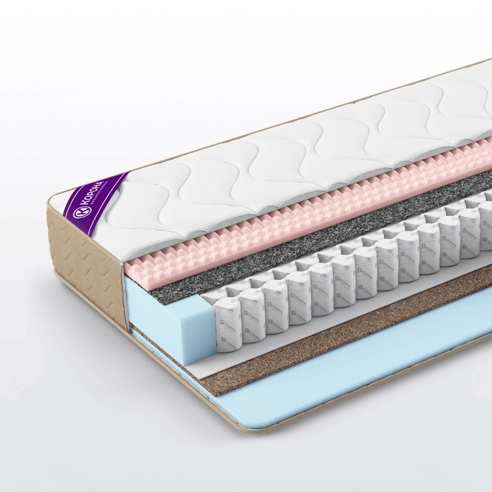 Блок независимых пружин TFK 500 - конструкция из высокоуглеродистой закаленной стали, в которой каждая пружина упакована в отдельный чехол из спанбонда и работает локально. Матрас не скрипит, а пружины защищены от коррозии и пыли.