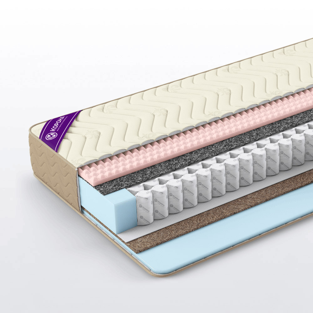 Блок независимых пружин TFK 500 - конструкция из высокоуглеродистой закаленной стали, в которой каждая пружина упакована в отдельный чехол из спанбонда и работает локально. Матрас не скрипит, а пружины защищены от коррозии и пыли.