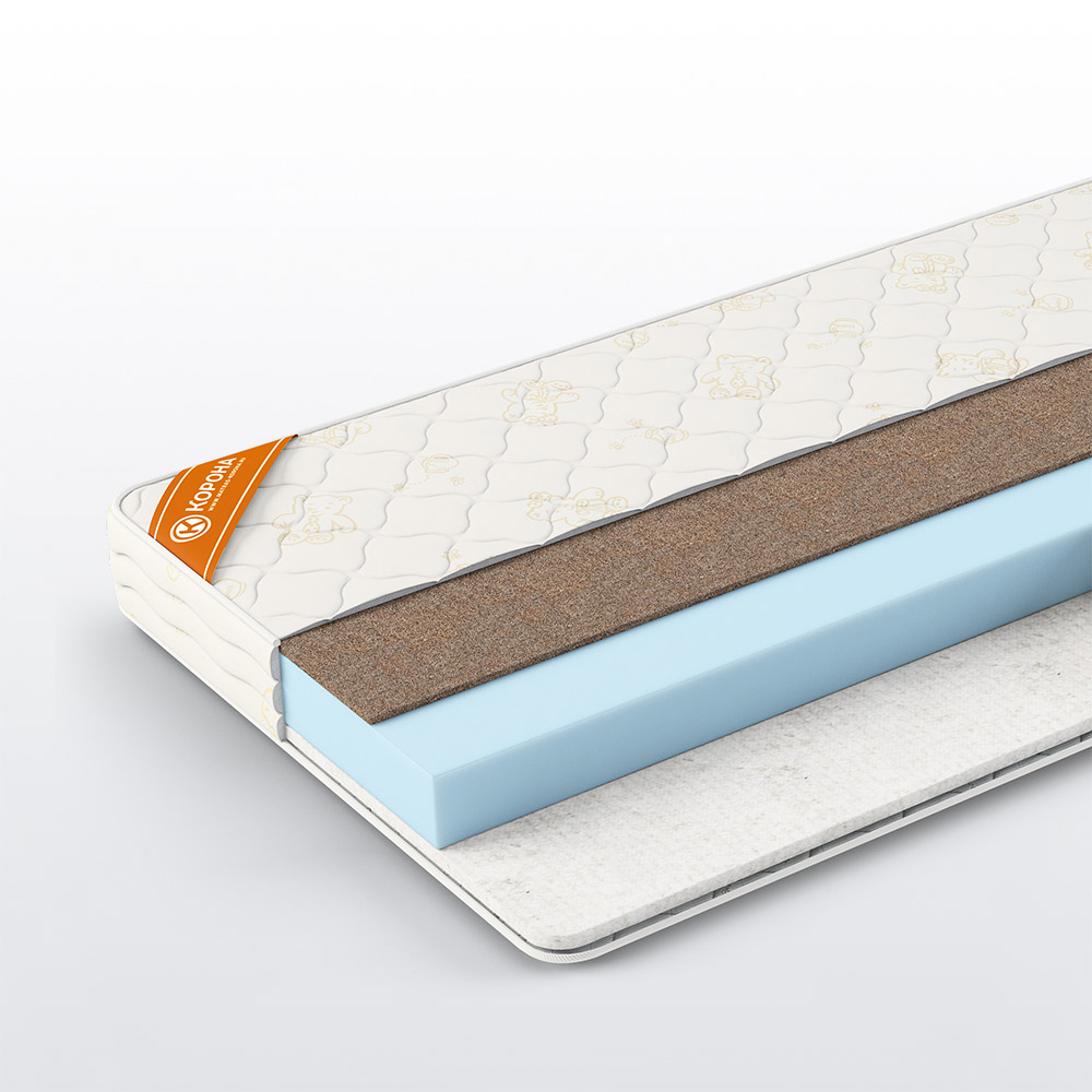 Универсальная модель, в которой можно менять жесткость по мере роста ребенка. Сторона со струттофайбером в раннем возрасте будет подстраиваться под форму тела и способствовать правильному формированию изгибов позвоночника в шейном и поясничном отделах. По мере укрепления мышечной ткани можно использовать более жесткую сторону с кокосовой койрой. Спать на такой стороне нужно на спине для формирования прямой осанки и профилактики сколиоза.