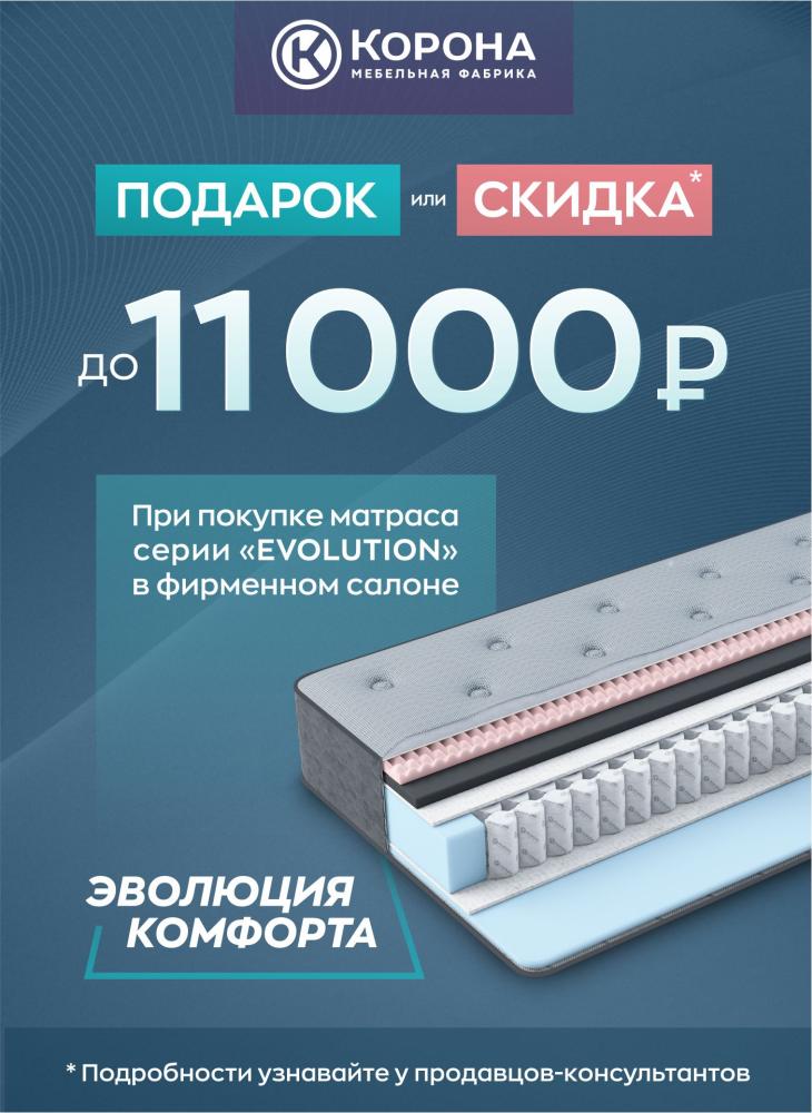 При покупке матраса серии «Evolution» дарим подарок или скидку на выбор!